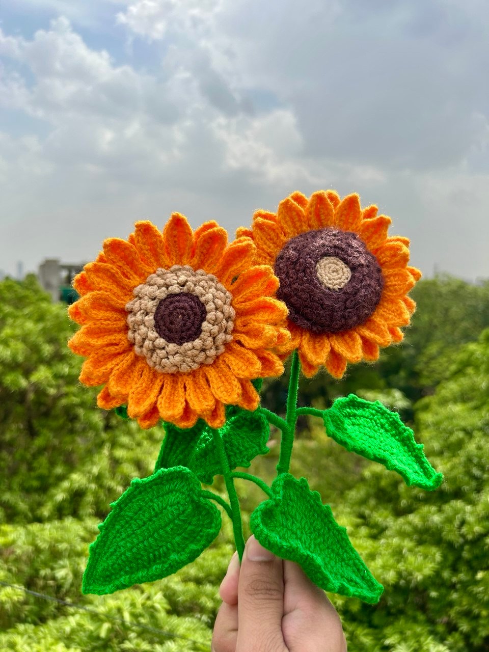 Each sunflower is carefully crafted with premium yarn, combining durability with a soft, luxurious feel.