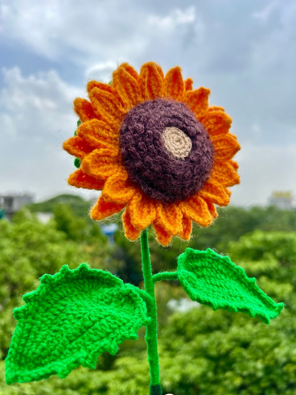 Brighten your home with our Premium Yarn Crochet Sunflower, lovingly handmade by skilled artisans for a unique touch in every piece. Perfect as a centerpiece, wall hanging, or shelf accent — a cheerful boost for any space.